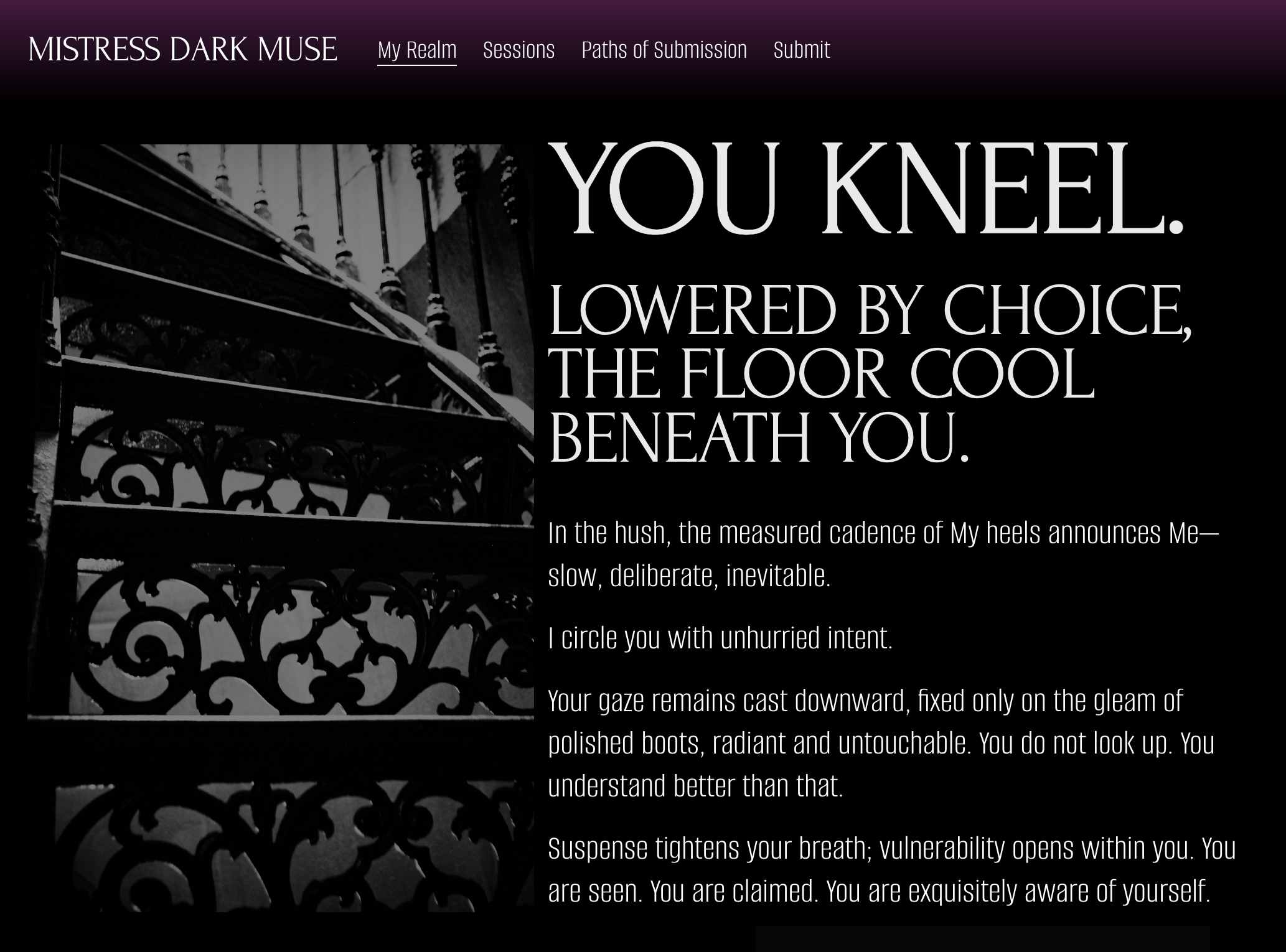 How does interacting with your website affect the way people perceive you? Does it feel mysterious and alluring? Sexy but intimidating? Serious but motivating? Let’s draw out your Domme’s voice, energy, and attitude to give others a taste of what it’s like to engage with you.